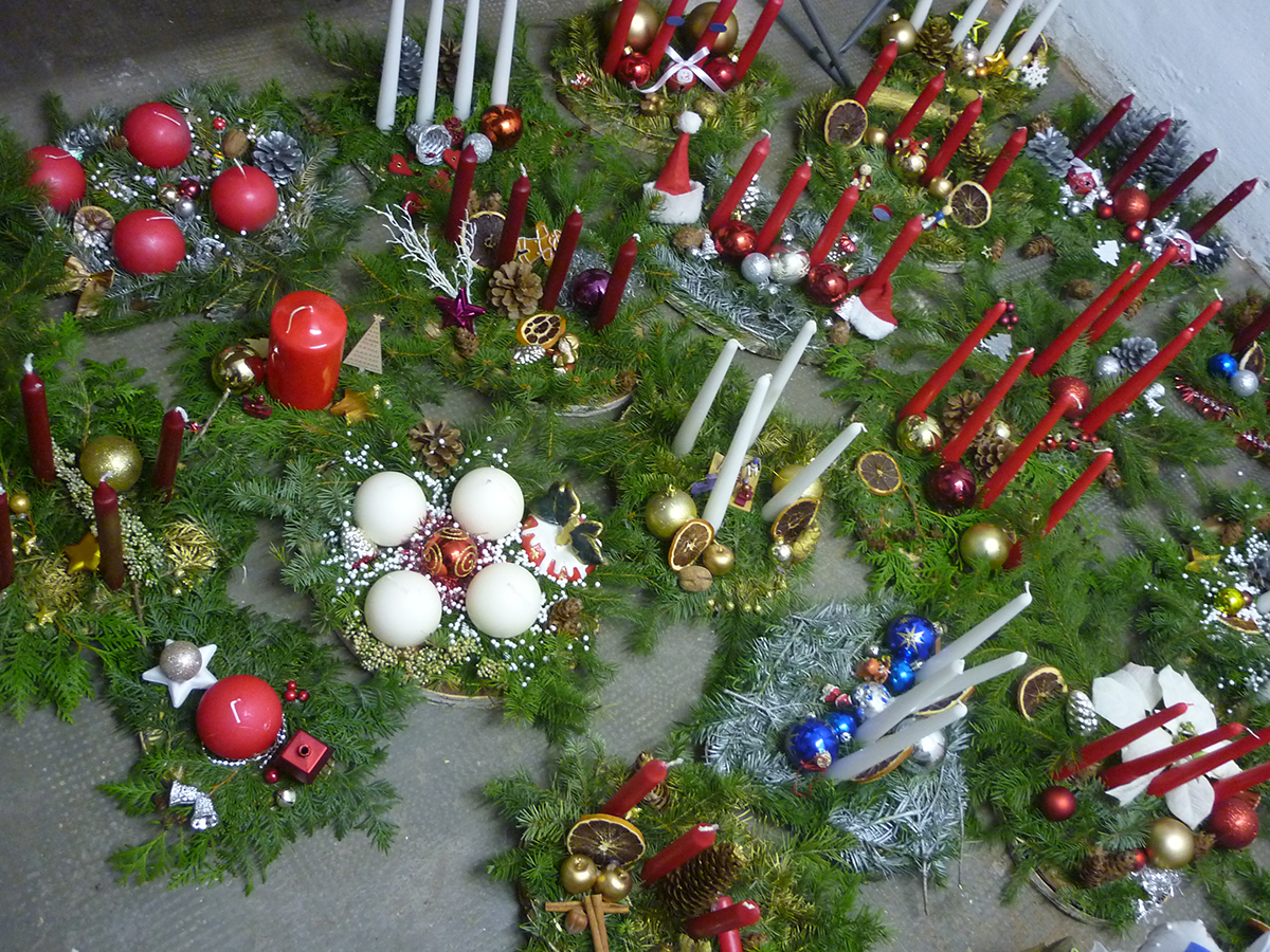 In der Kita "Strolchenland" sind hübsche Gestecke und Kränze für die Vorweihnachtszeit entstanden. Bei weihnachtlicher Musik und Kaffee sind einige Mitglieder des Elternbeirates zusammen gekommen und haben sich kreativ betätigt. Die Ergebnisse können sich sehen lassen und wurden gegen eine kleine Spende an die Familien abgegeben - der Erlös kommt dem Förderverein der Kita zu Gute.